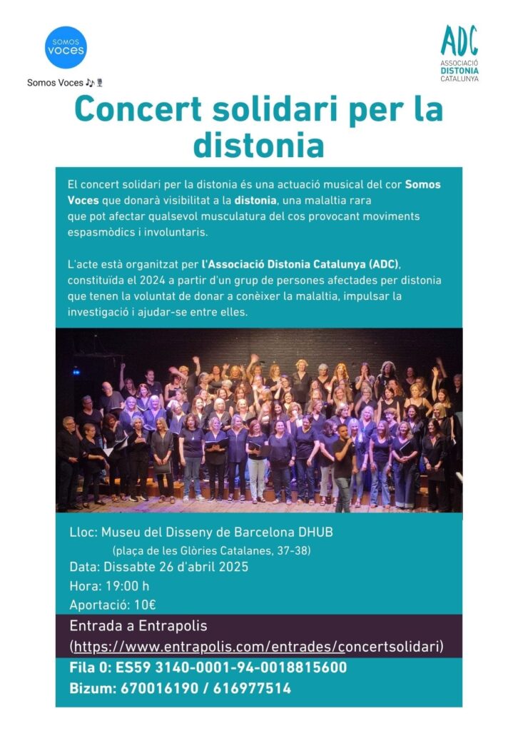 Compra la teva entrada pel concert solidari per la distonia que es desenvoluparà el proper 26 d’abril a Barcelona.